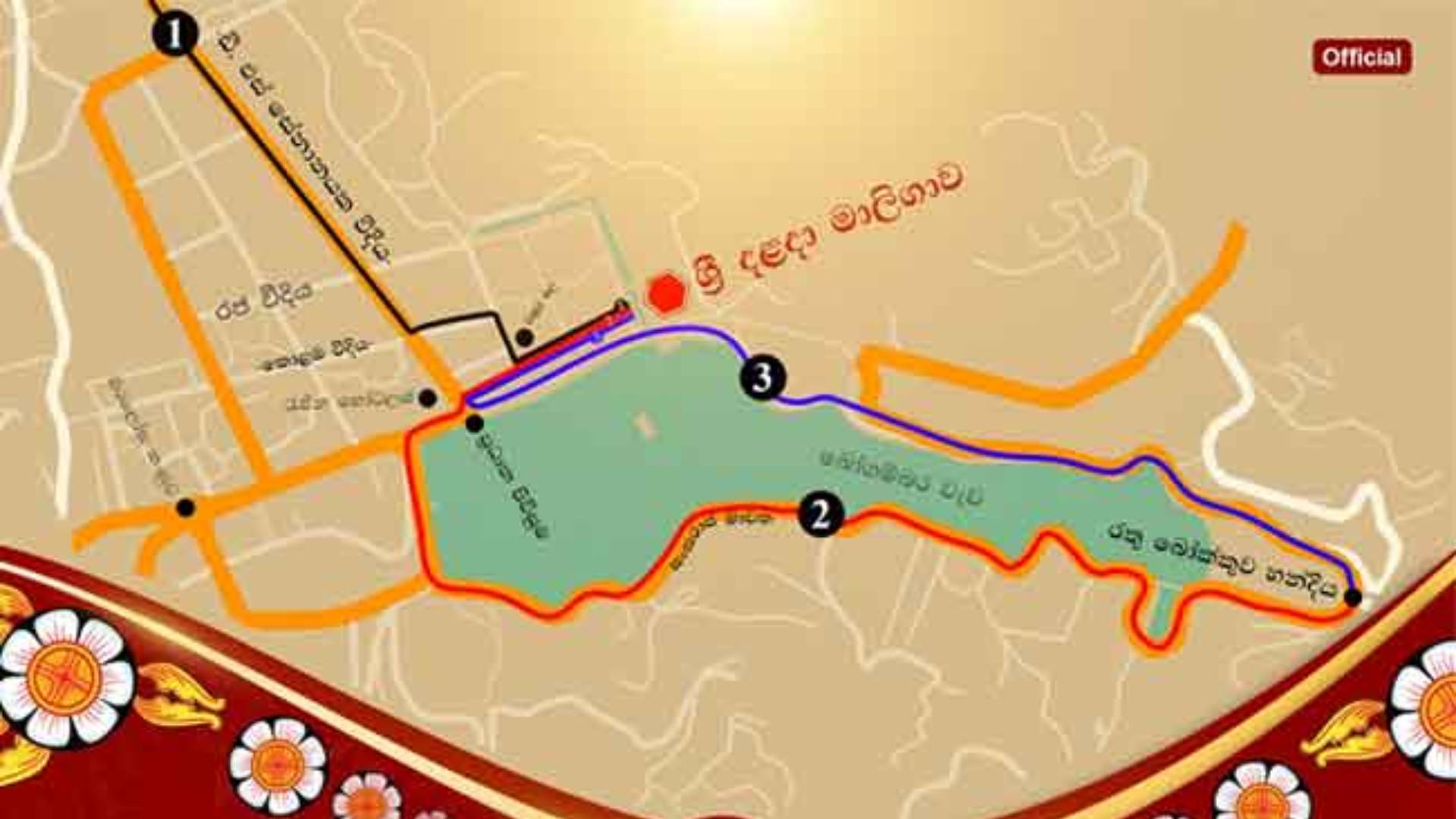 ඒ අනුව ඩී.එස් සේනානායක වීදිය දෙස සිට (ත්රිකුණාමලය වීදිය) දළදා මාලිගාවේ පෝලිම් මාර්ගය දක්වාත්,