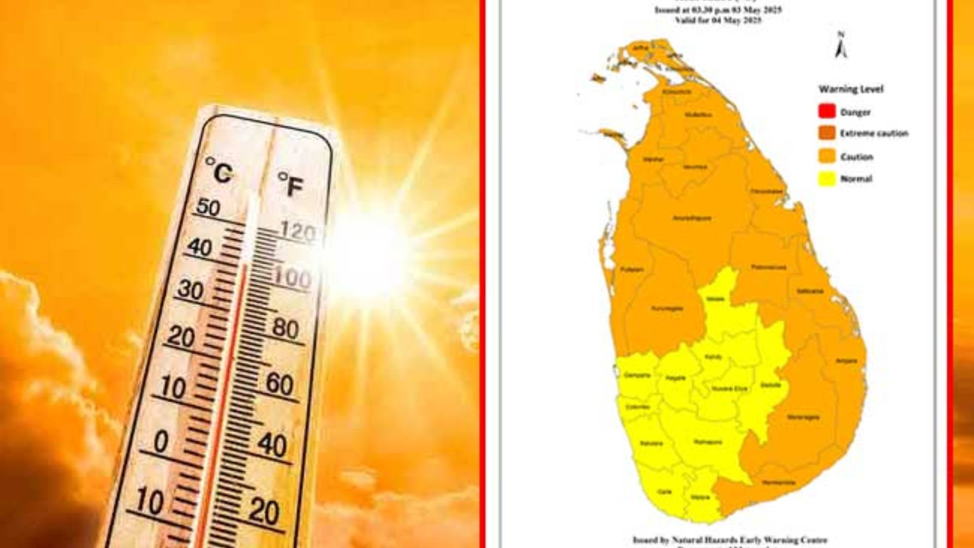 නැගෙනහිර, උතුරු, උතුරු-මැද සහ වයඹ පළාත්වලත් මොනරාගල සහ හම්බන්තොට දිස්ත්රික්කවලත් ඇතැම් ප්රදේශවල උණුසුම් දර්ශකය, එනම් මිනිස් සිරුරට දැනෙන උණුසුම “අවධානය යොමු කල යුතු” මට්ටමක පැවතිය හැකි බව කාලගුණවිද්යා දෙපාර්තමේන්තුව වැඩිදුරටත් නිවේනදය කරයි.